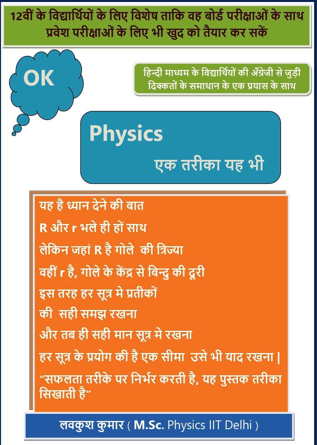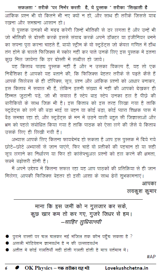 उद्देश्य - विद्यार्थियों को आने वाली दिक्कतों और उनसे होने वाली चूक के उपाय के तौर पर ताकि वह भौतिकी की बेहतर समझ के साथ अच्छा स्कोर करके अपने सपनों को पंख दे सकें |