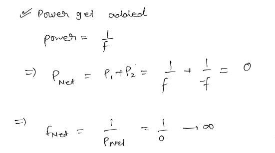 Two thin lenses are of same focal lengths (f), but one is convex and the other one is concave. When they are placed in contact with each other, the equivalent focal length of the combination will be ?NEET UG2023