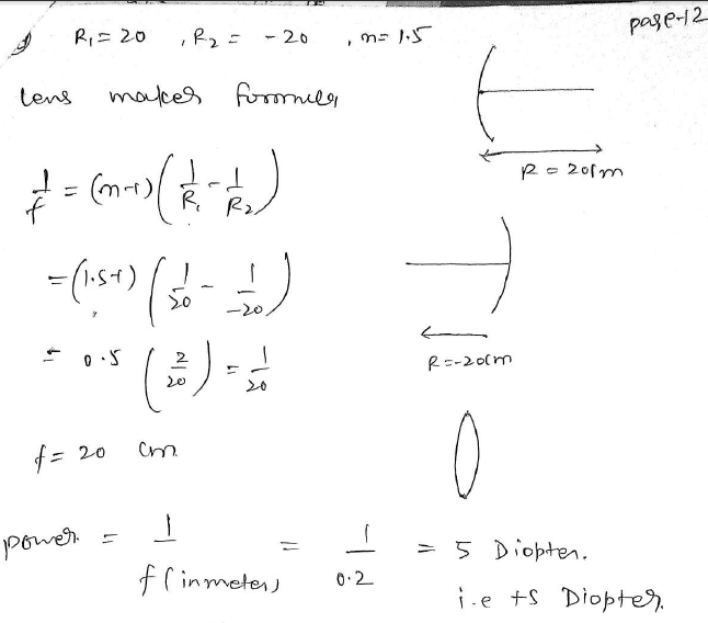 Lens maker fomula for focal length then change f in meter for calculating power.